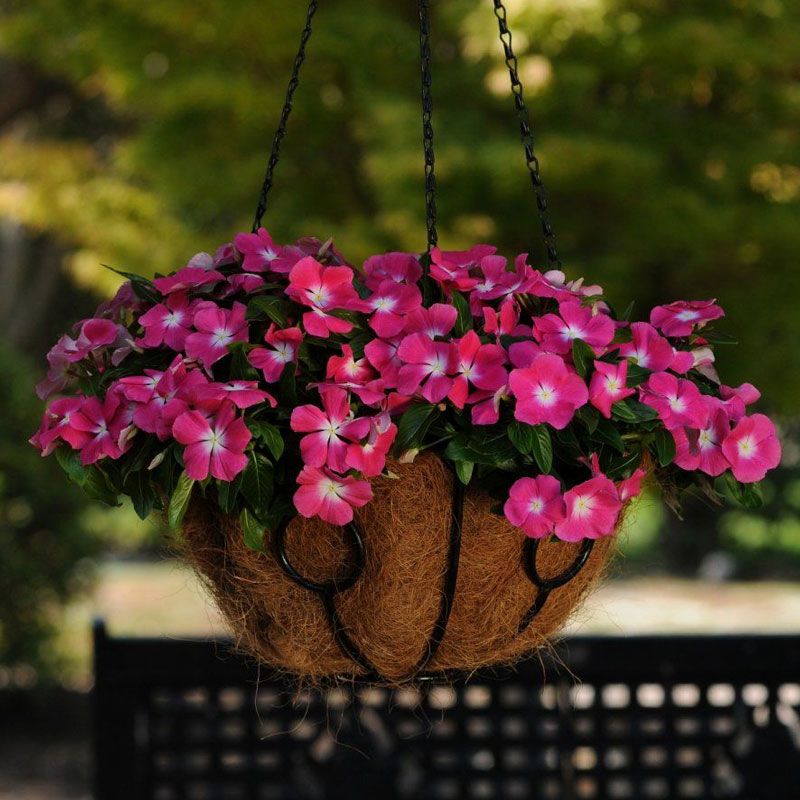 Катарантус ампельний Медітер F1 роуз хеллоу (Catharanthus roseus Mediterranean F1) – крупноквіткова серія для підвісних кошиків і кашпо.