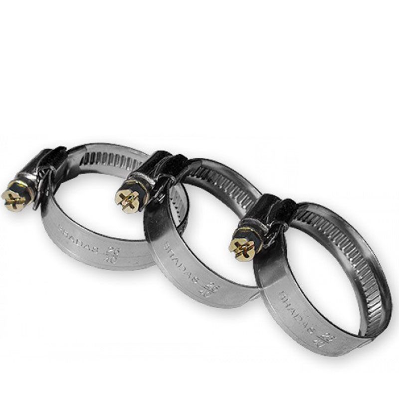 Кожен хомут має напис Bradas і розмір у міліметрах.