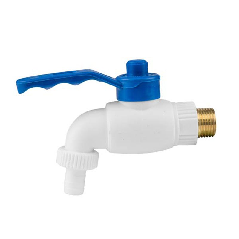 Кран пластиковий з латунним входом НР 1/2" вихід 1/2" – кран, який виготовлений з високоміцного пластика, а для посилення з'єднання оснащений латунним зовнішнім різьбленням діаметром 1/2".