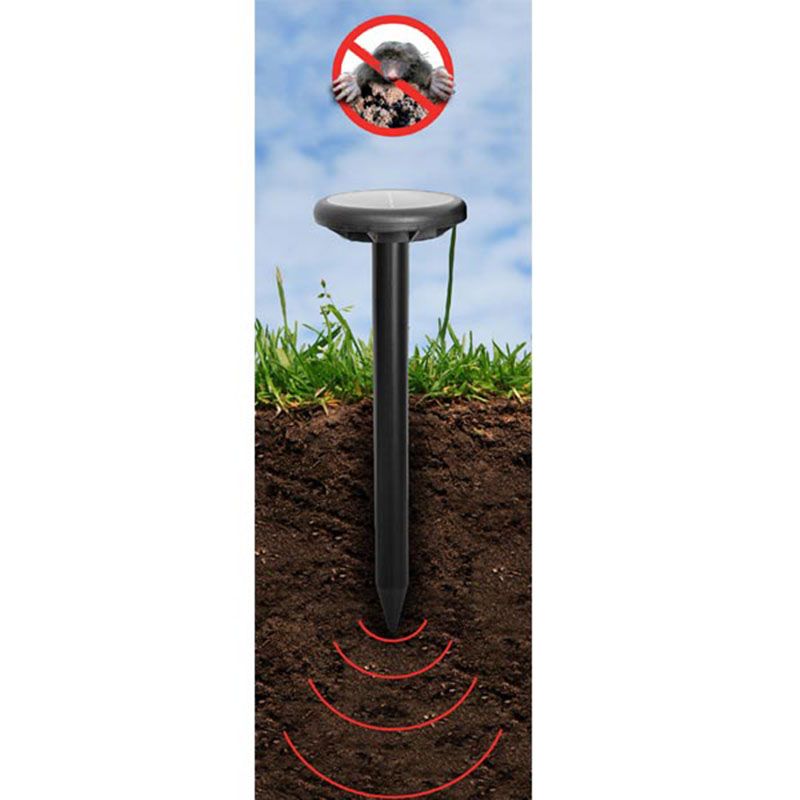 Відлякувач кротів та гризунів велике коло – відлякувач кротів, мишей і різних гризунів. Має вбудовану сонячну батарею і ефективний для ділянок радіусом 15 м.