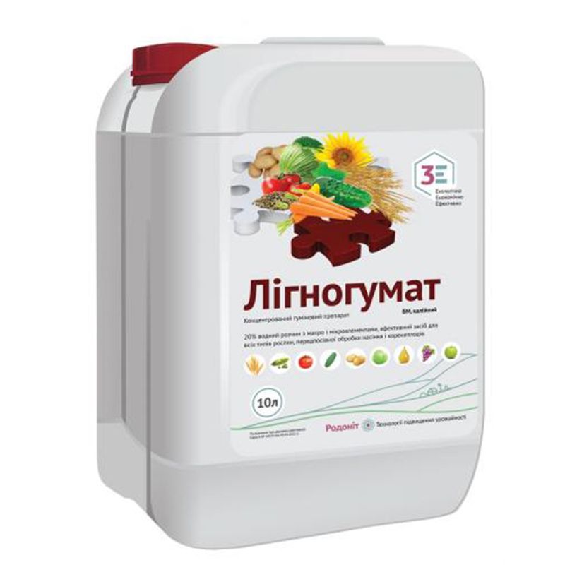 Стимулятор росту Лігногумат СП (марка БМ) – безбаластний гуміновий препарат з найвищим вмістом фульвових кислот, регулятор росту рослин з антистресовими функціями. Це стимулятор росту, антистресант, прилипач і мікродобриво, збагачений біологічно активними речовинами – амінокислотами, вітамінами, фітогормонами. Бере участь у структуроутворенні ґрунту.