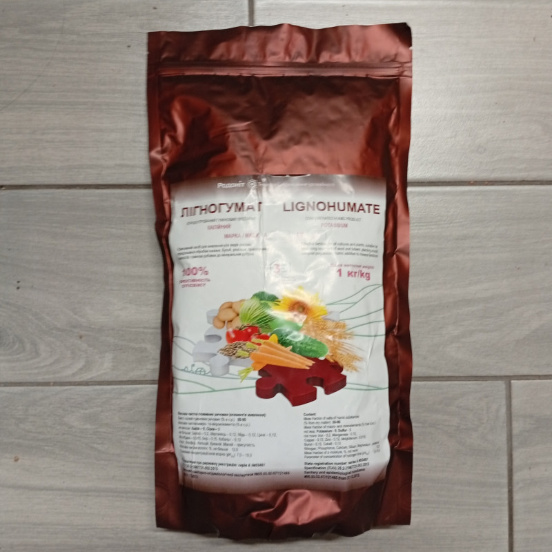 Стимулятор роста Лигногумат СП (марка АМ) – безбаластний гуміновий препарат з найвищим вмістом фульвових кислот, регулятор росту рослин з антистресовими функціями. Це стимулятор росту, антистресант, прилипач і мікродобриво, збагачений біологічно активними речовинами – амінокислотами, вітамінами, фітогормонами. Бере участь у структуроутворенні ґрунту.