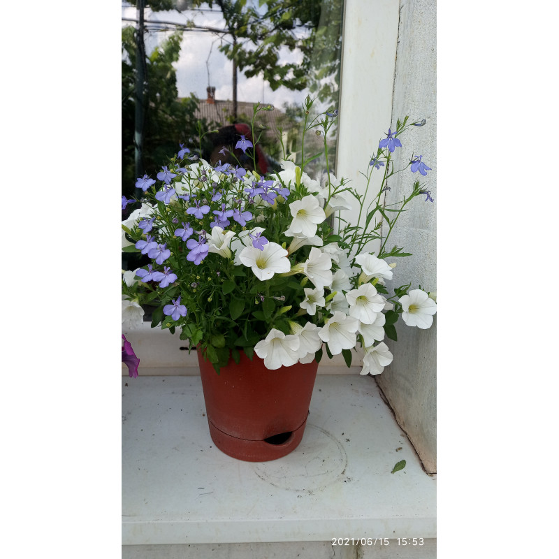 Лобелія – рослина невисока (15 см), розлога з дрібними (1,5-2 см у діаметрі) синіми квітками.