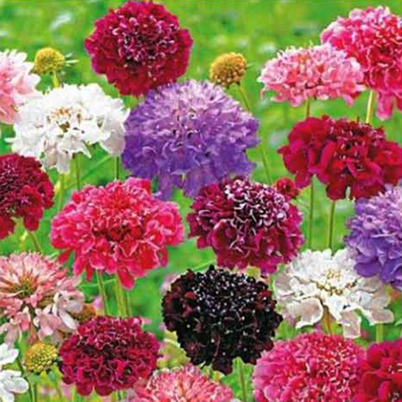 Скабіоза суміш махрова – ефектні поєднання кольорів дивного однорічника висотою 45 см з великими ароматними квітами.