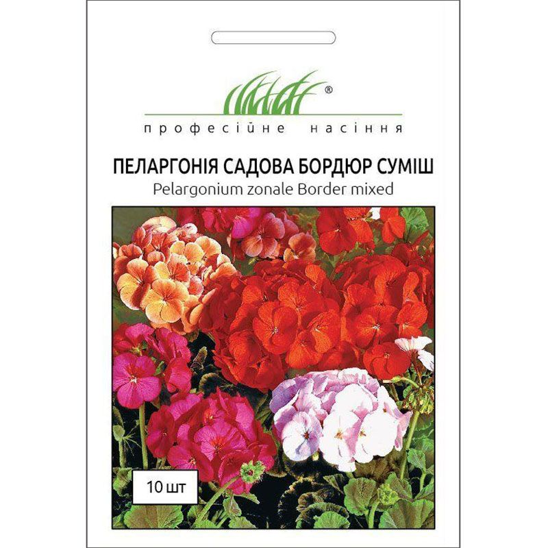 Пеларгонія садова Бордюр суміш (герань бордюрна) (Pelargonium hortorum Border mix) – популярна багаторічна кімнатна рослина.