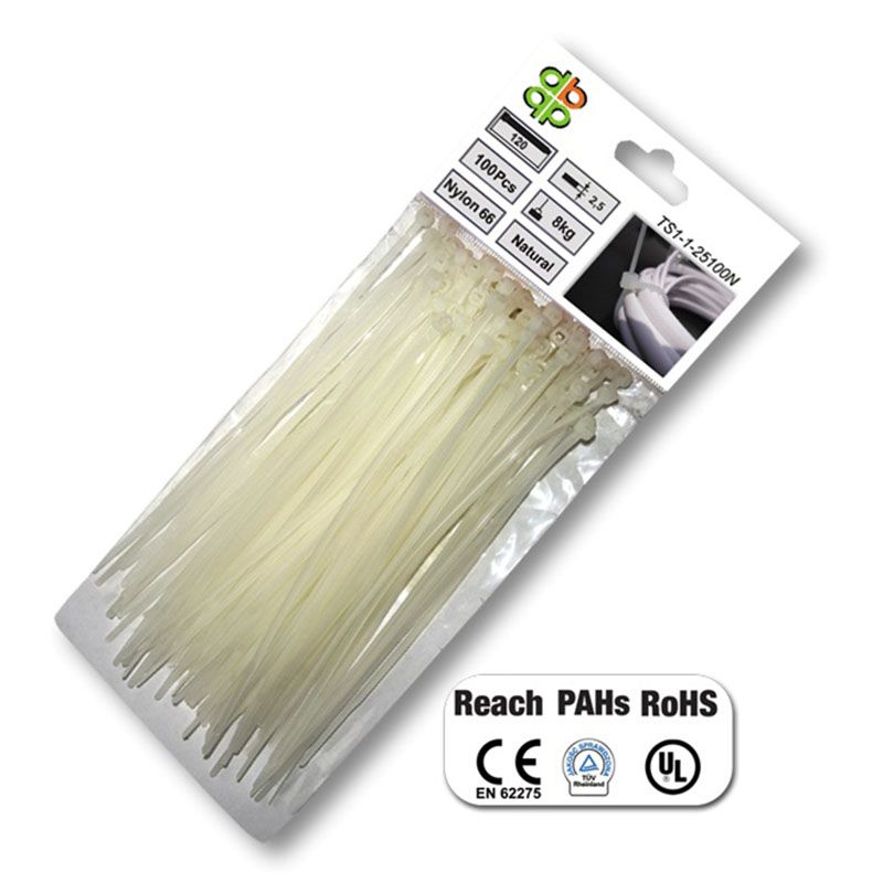 Нейлон 6-6, з якого виготовлені кабельні стяжки Bradas, характеризується низьким коефіцієнтом тертя, не розчиняється в більшості органічних розчинників, стійкістю до дії солоної води, слабких розчинів кислот і лугів.