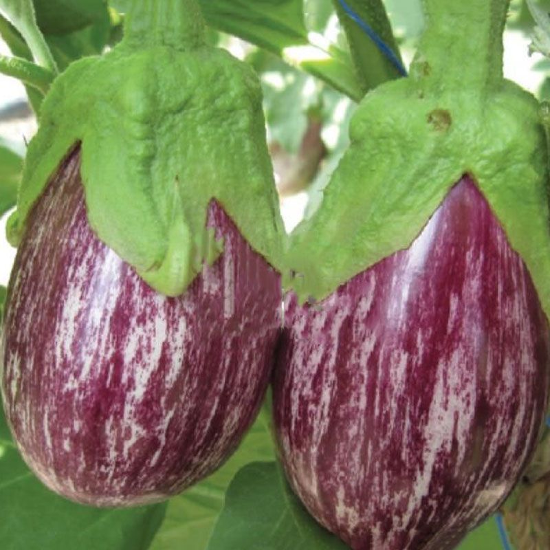 Характеристика плодів – Гладкі, ароматні, овальні плоди світло-фіолетового кольору з кремовими смужками. Вага плоду – 200-250 г, 12 см в довжину і 7 см в діаметрі. М'якоть біла.