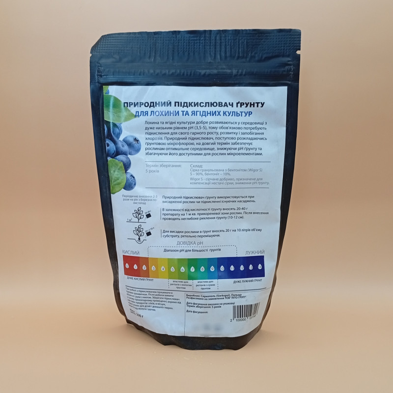 Лохина, чорниці та інші ягідні культури найкраще розвиваються у середовищі з рівнем ph від 3,5 до 5, тому їм необхідне підкислення для росту та профілактики хлорозу.