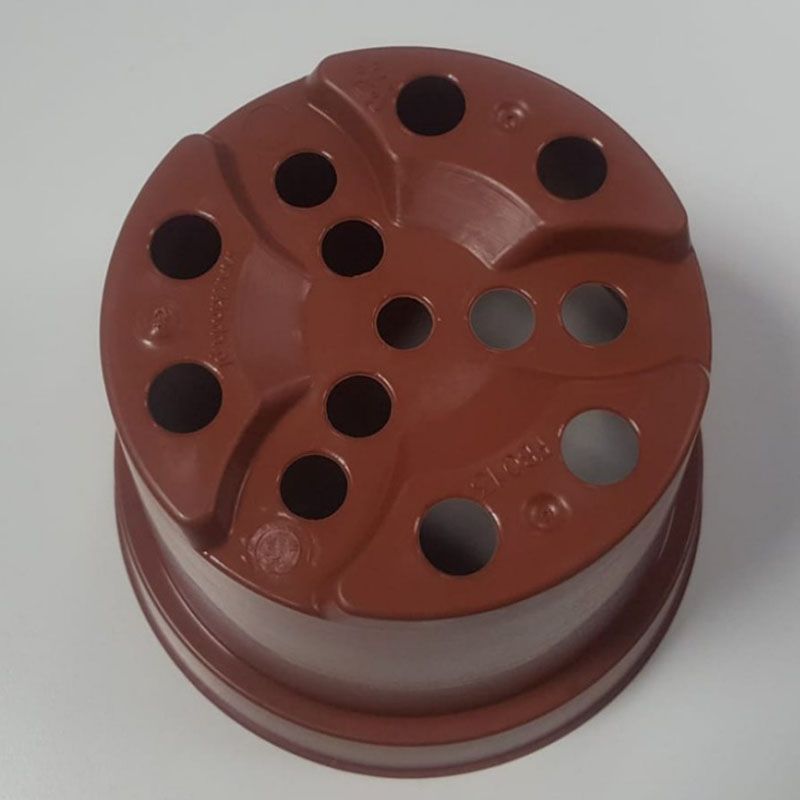 Виготовлений з первинного пластику, має жорсткі стінки і щільне дно з хорошими дренажними отворами.