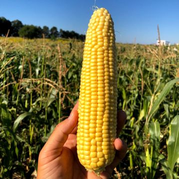 Характеристика плодів – Зерно яскраво-жовтого кольору, качани красивого товарного вигляду. Кукурудза суперсолодка, вміст цукрів – 22%. Відмінний смак.