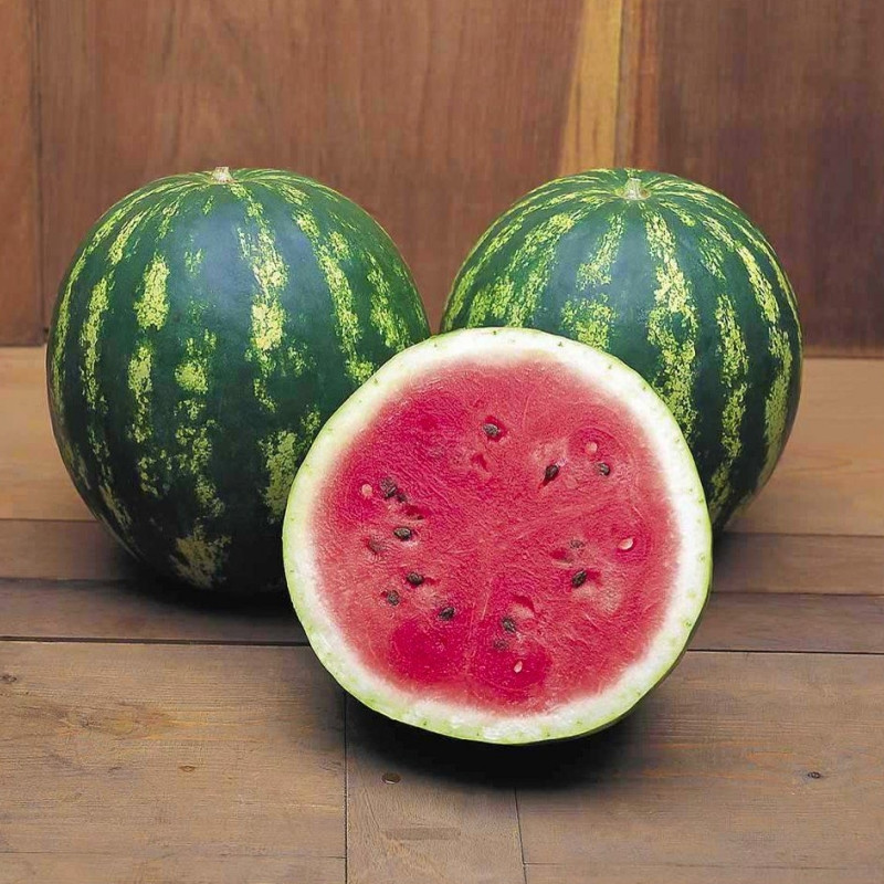 Характеристика плодів – Плоди середньо-зелені з темними смужками, округлі, вагою 10-12 кг. М'якуш темно-червоний, з високим вмістом цукру і майже без насіння.