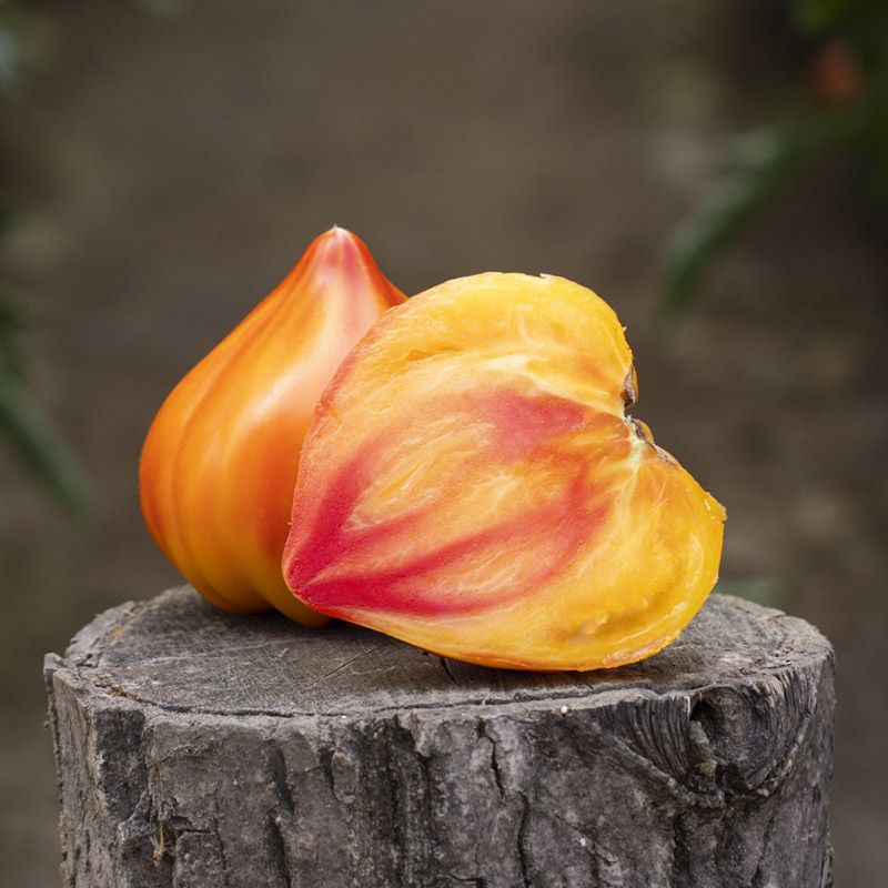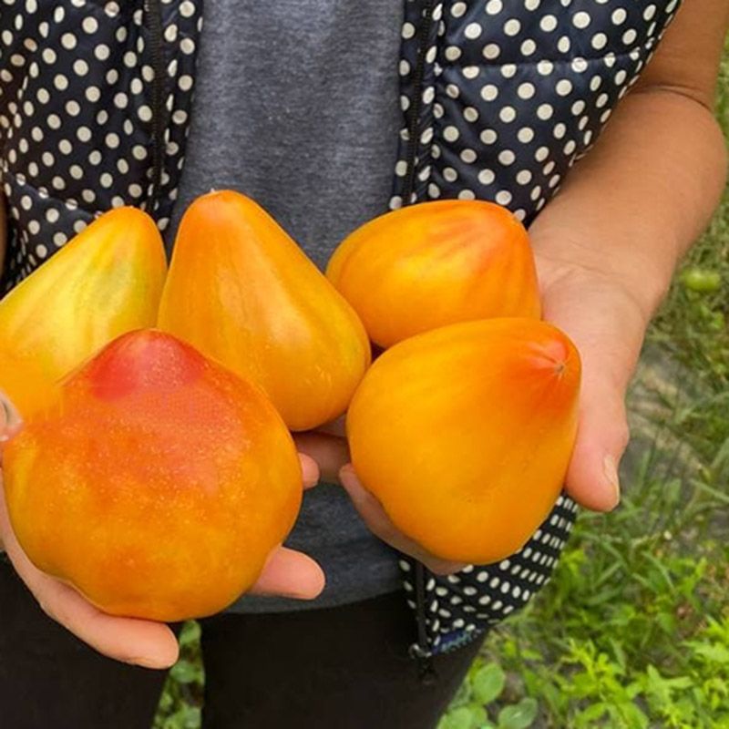 Характеристика плодів – Форма томата подовжено-каплевидна, ребриста. Плоди жовто-оранжевого забарвлення, середньою масою 200-400 г (великоплідні). Володіють відмінним товарному видом, у м'якоті смачний і апетитний аромат, колір.