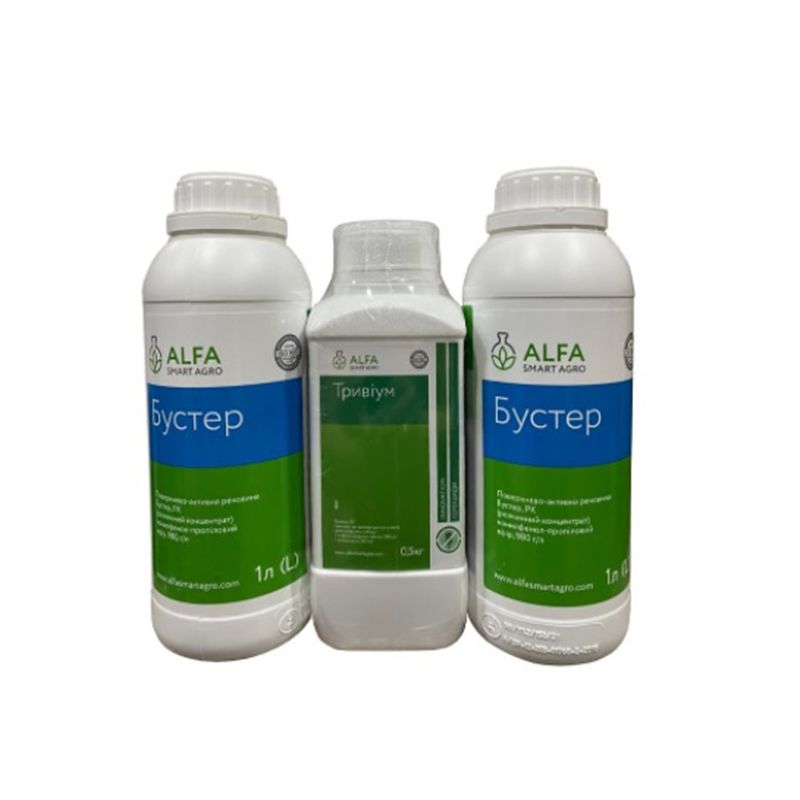 Гербіцид Тривіум + ПАР Бустер – трикомпонентний післясходовий гербіцид системної дії проти злакових та дводольних бур’янів на посівах кукурудзи.