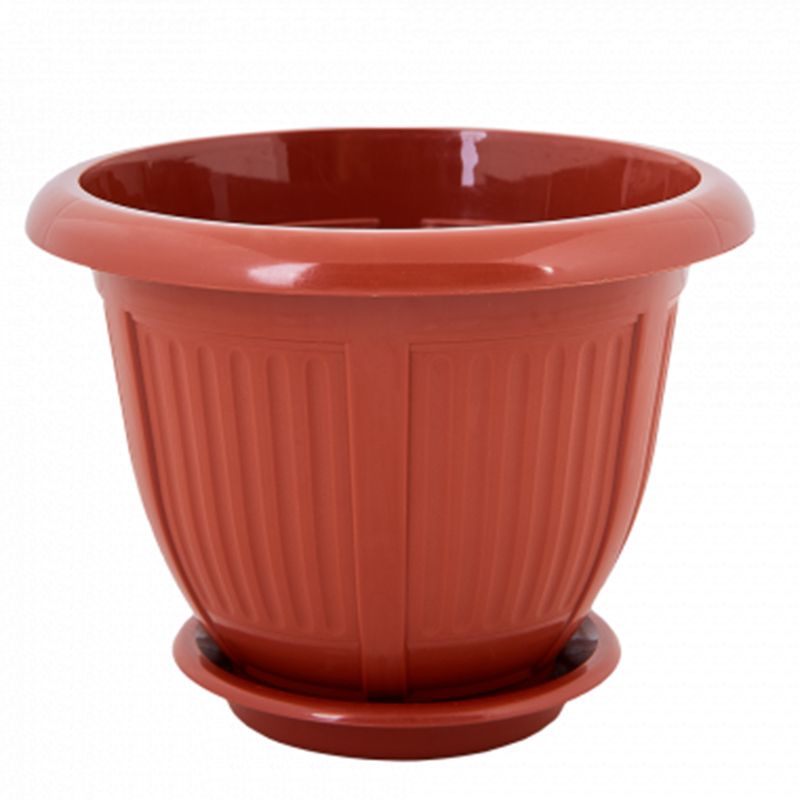 Горщик з підставкою Хвиля 18 л – круглий горщик з підставкою, який підійде для вирощування фіалок, азалій, бегоній, драцен, що стеляться кімнатних квітів і рослин з об'ємною кроною. Причому наявність лотка для збору зайвої вологи не тільки спрощує догляд за рослинами, але і робить горщик більш стійким.