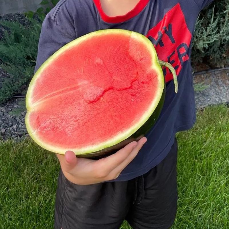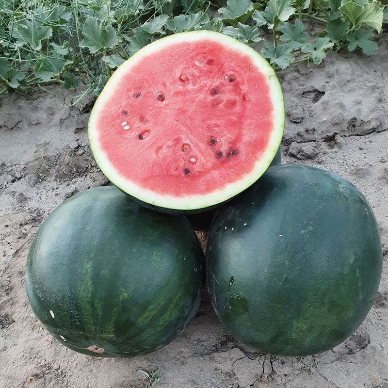 Характеристика плодів – Плоди мають округлу форму і чудовий товарний вигляд, темно-зелену шкірку. М'якуш насичено-червоного кольору, шкірка досить щільна і хрумка. Середня вага плода: 6-9 кг.