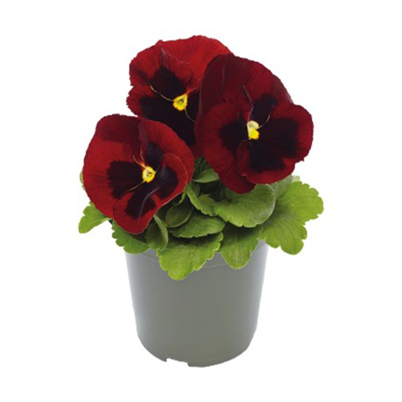 Віола Інспаєр Делюкс F1 червона з віком (Viola wittrockiana Inspire DeluXXe F1 Red Blotch) – найкраща серія XL на ринку, яка ідеально підходить для вирощування наприкінці літа та початку осені.
