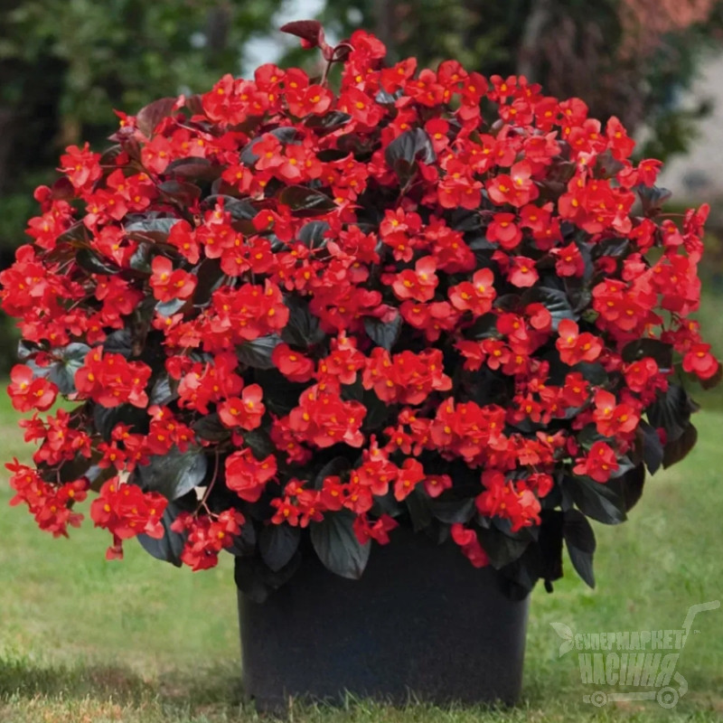 Бегонія Біг Делюкс F1 червона з бронзовим листом (Begonia x benariensis BIG DeluXXe F1 Red Bronze Leaf) – квітка, яка використовується для великих горщиків, підвісних кошиків, змішаної тари та великих насаджень.