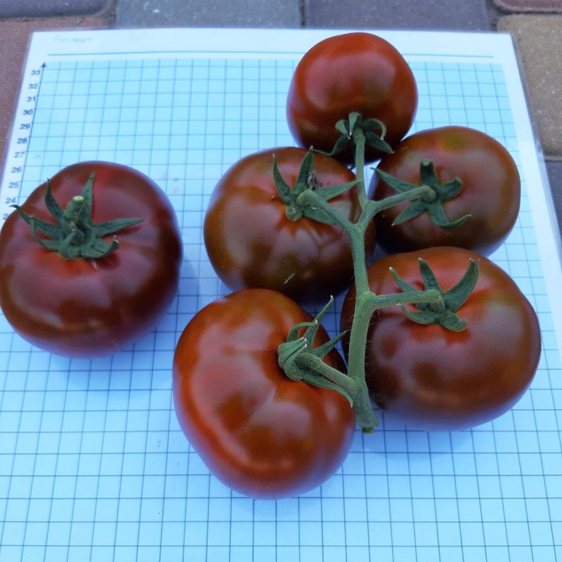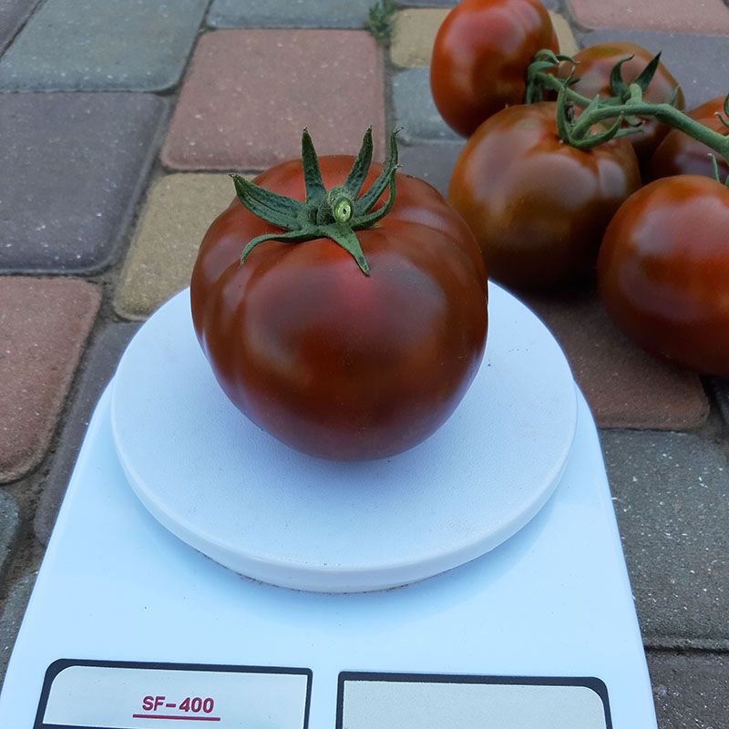 Характеристика плодів – Плоди округло-плескатої форми, яскраво-коричневого кольору, вагою 180-250 г. Багатокамерні, дуже щільні та соковиті. Висока стійкість до розтріскування з можливістю тривалого транспортування.