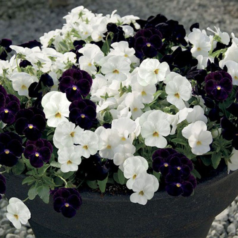 Віола Коріна F1 біло-чорна суміш (Viola cornuta Corina F1, mixture) – рослина, яка формує однорідні кущі заввишки 10-15 см, шириною 25-30 см.