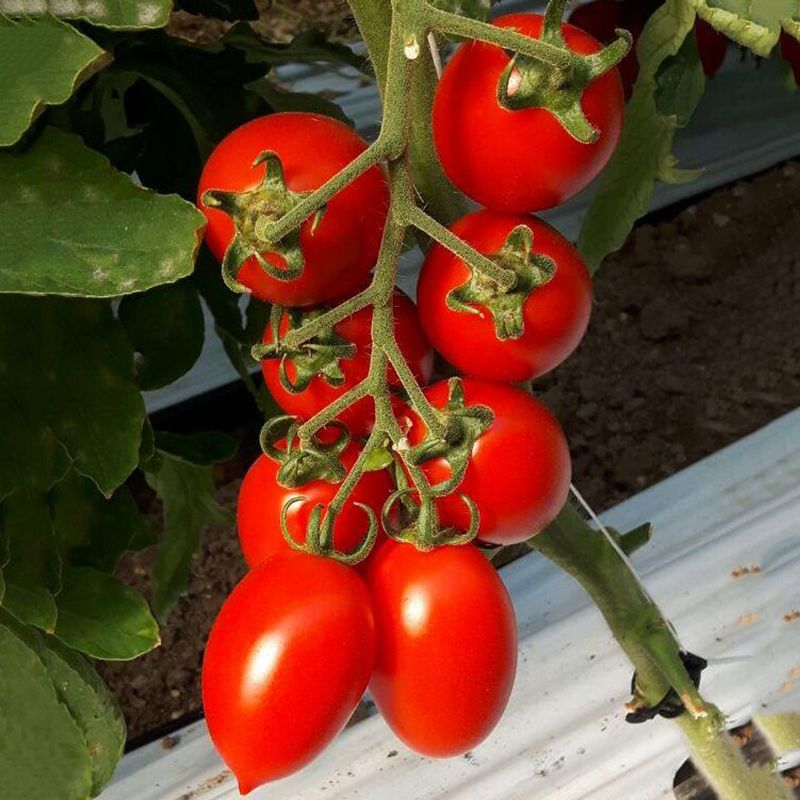 Характеристика плодів – Плоди яскраво-червоного кольору, сливовидної форми з носиком, вагою 40-50 грамів. Формує кисті за 8-10 плодів.