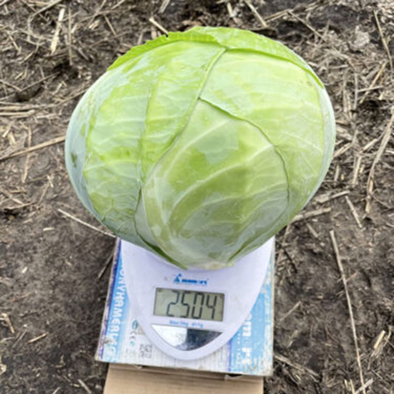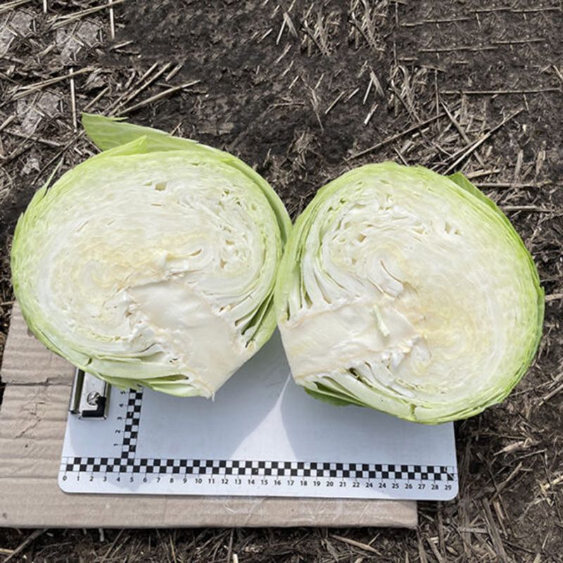 Характеристика плодів – Головки округлі, зеленого кольору, дуже щільні, вирівняні, красивого товарного вигляду. При достиганні головки білі. Маса головки – 2,5-3 кг.
