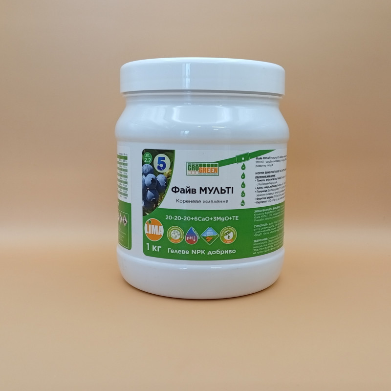 Добриво Мульті 5 Гель (20-20-20+6Ca+3MqO+TE) – комплексне водорозчинне гель-добриво з високим вмістом поживних речовин.