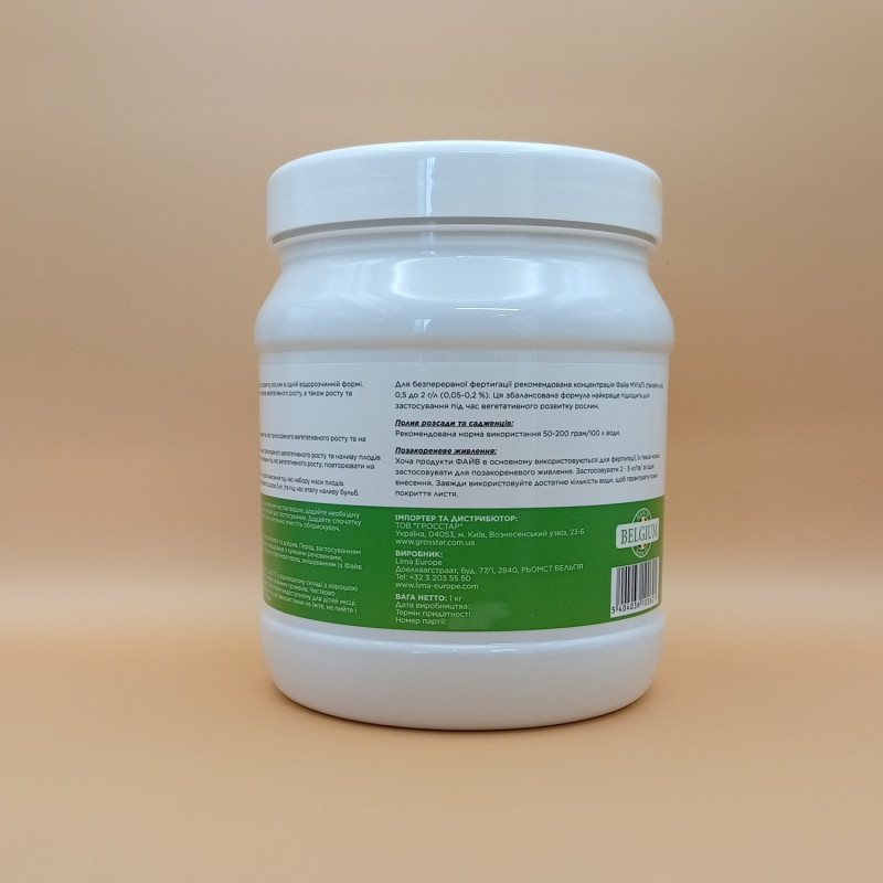 Спеціально розроблене поєднання основних 5 елементів для збалансованого живлення рослин під час стадій зростання та розвитку.