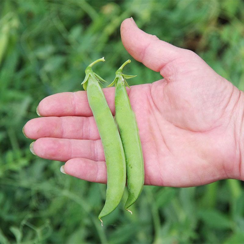 Характеристика плодів – Стручки зеленого кольору, довжиною 9 см. У стручках по 8-10 насінин. Чудовий солодкий смак, колір та аромат.