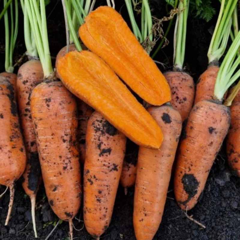 Характеристика плодів – Коренеплід конічний, з тупим кінчиком, високою однорідністю, в основному довжиною 15-17 см, діаметром 4-5 см, насиченого темно-оранжевого кольору, з дуже гладкою поверхнею, солодкий на смак.
