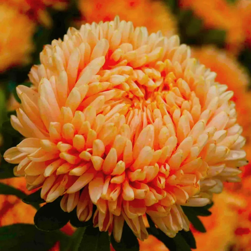 Айстра Леді Корал помаранчево-абрикосова (Callistephus chinensis Lady Coral) – високоросла серія, суцвіття якої одночасно нагадує троянду і хризантему.