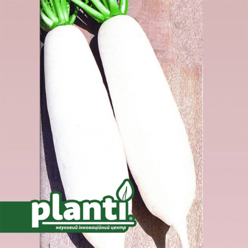 Характеристика плодів: Коренеплоди великі, мають циліндричну форму. Не утворюють зелені плями ближче до листової розетки. Рівне і красиве біле забарвлення. Маса однієї редьки в середньому 1500 гр. М'якуш блискучого, білого кольору, хрумка.