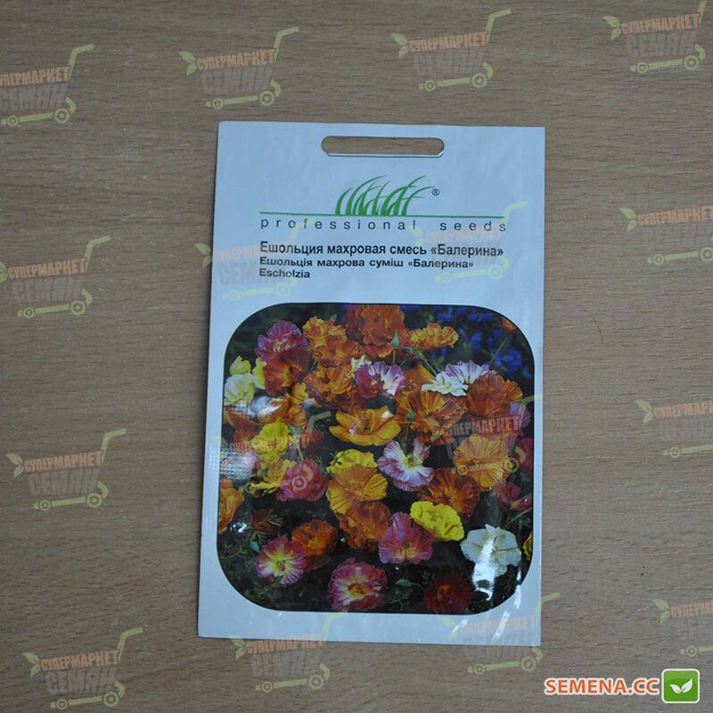 Ешшольція Балерина суміш (mix) - холодостійка однорічна рослина, висотою 25-30 см. Квітки махрові, діаметром 6-7 см, жовтого, помаранчевого і червоного забарвлення, розкриваються тільки вдень в ясну і сонячну погоду.