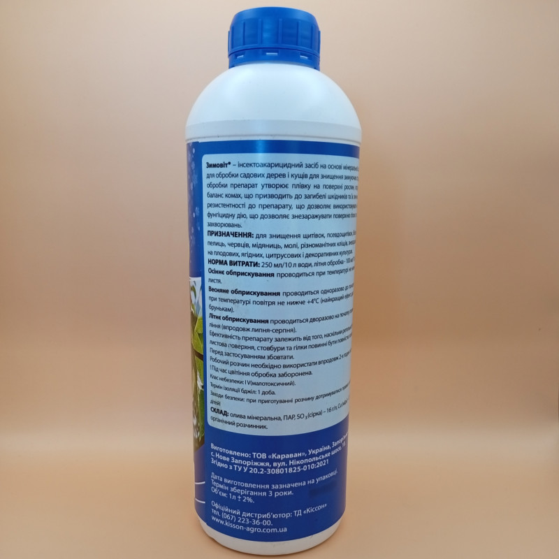 Механізм дії: Після внесення розчину на поверхні рослини утворюється тонкий шар, що викликає у шкідників збої в повітряно-водному балансі і призводить до швидкої смерті комах. Зимовіт дуже ефективний у всіх фазах розвитку рослини. Шкідники не виробляють імунітет, тому можна застосовувати кожен сезон.