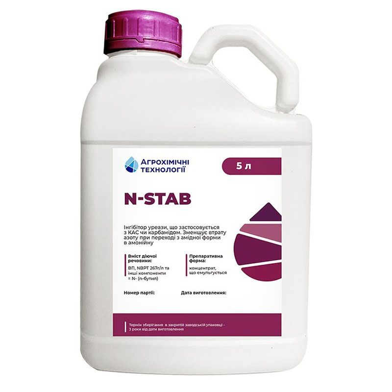 N-STAB блокує активність ензиму уреаза в ґрунті, збільшуючи час переходу від амідної (NH2) до амонійної (NH4) форми азоту на 10-14 днів із одночасним зменшенням втрат аміаку.