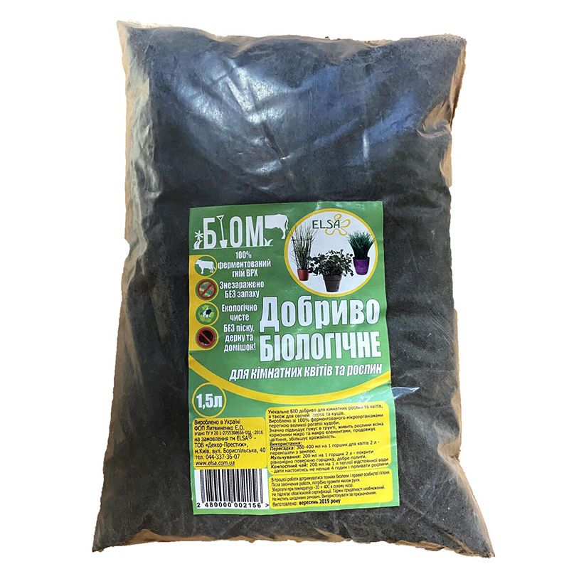 Добриво органічне Біом – спеціальна упаковка для домашнього використання. Підходить для пересадки кімнатних рослин, квітів, овочів та інших культур.