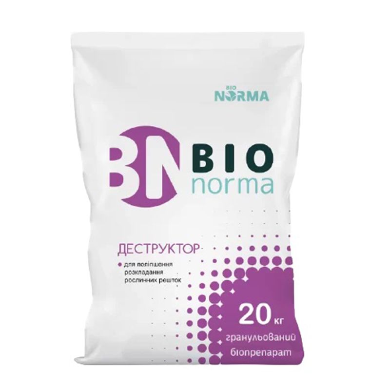 Комплексна робота бактерій та мікроміцетів, що входять до складу препарату Біонорма Деструктор, дозволяє прискорити процеси розкладання органічних решток на полі, залишаючи у ґрунті вуглець та азот рослинного походження. На додачу, препарат покращує фітосанітарний стан ґрунту за рахунок пригнічення патогенної мікрофлори та покращення родючості ґрунту, що сприяє підвищенню врожайності культурних рослин від 10 до 30%.
