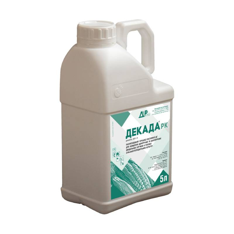 Декада — післясходовий системний гербіцид на основі дикамби (480 г/л), призначений для ефективного знищення однорічних і багаторічних дводольних бур’янів. Швидко проникає в рослину через листя та частково через кореневу систему, повністю знищуючи надземну масу та корені бур’янів.