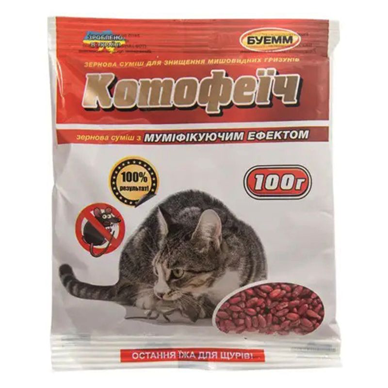 Родентицид Котофеїч зернова приманка – зернова отрута, яка застосовується для знищення різних видів мишоподібних гризунів.