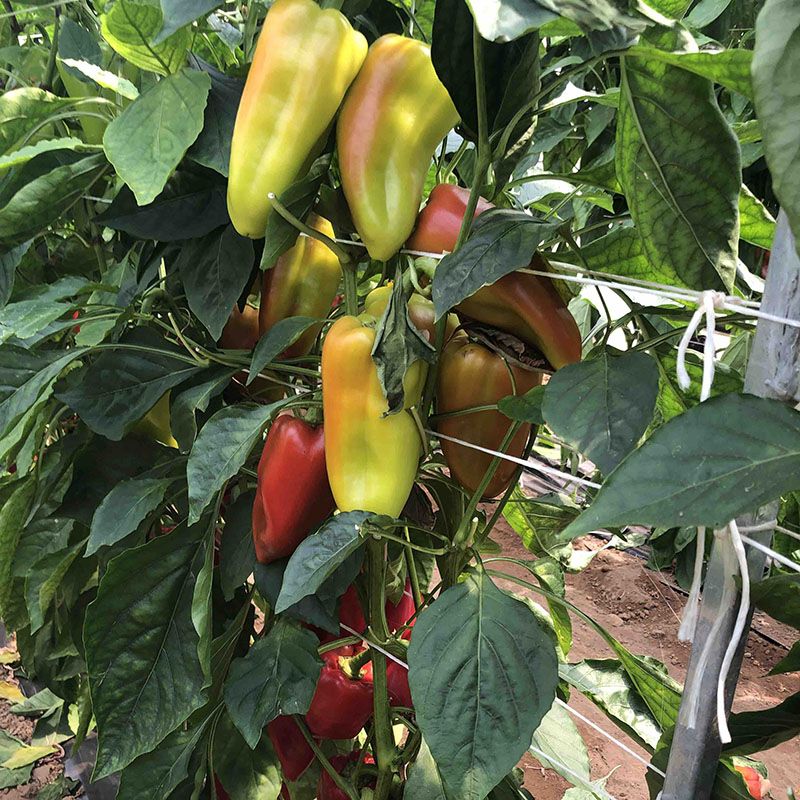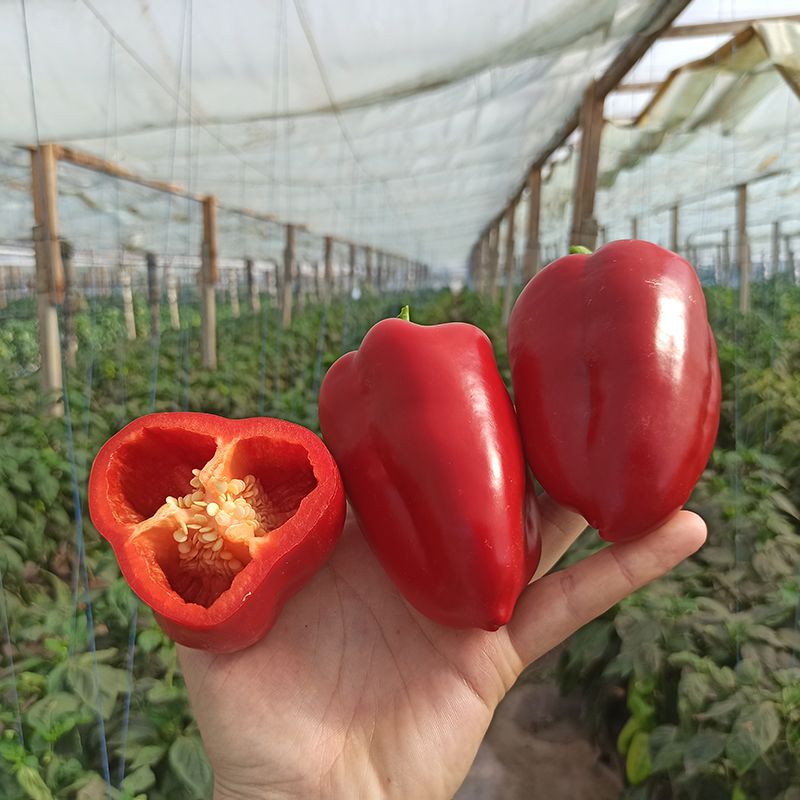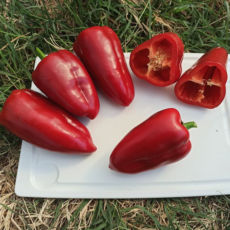 Характеристика плодів – Плоди вагою 170-180 г, однорідні, глянцеві, конічні, з насиченим червоним кольором у біологічній стиглості, зеленим – у технічній стиглості. Тверді, блискучі плоди, що виділяються з поміж типових перців на ринку, завдяки насиченому кольору та вирівнянності плодів. Розміри плодів 13-14x7-7.5 см. Товщина стінки – 7 мм.