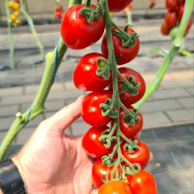 Характеристика плодів – Формує 7-9 яскраво-червоних плодів, масою 50-55 г, які мають неповторний смак. Томат «міді-слива» з інтенсивним, винятковим кисло-солодким смаком. Плоди сливовидної форми, стійкі до розтріскування.