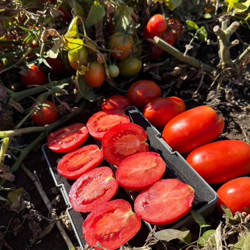 Характеристика плодів – Томат зі сливоподібними плодами червоного кольору. Плоди не мають зеленої плями біля плодоніжки. Вага плоду – 100-125 г.