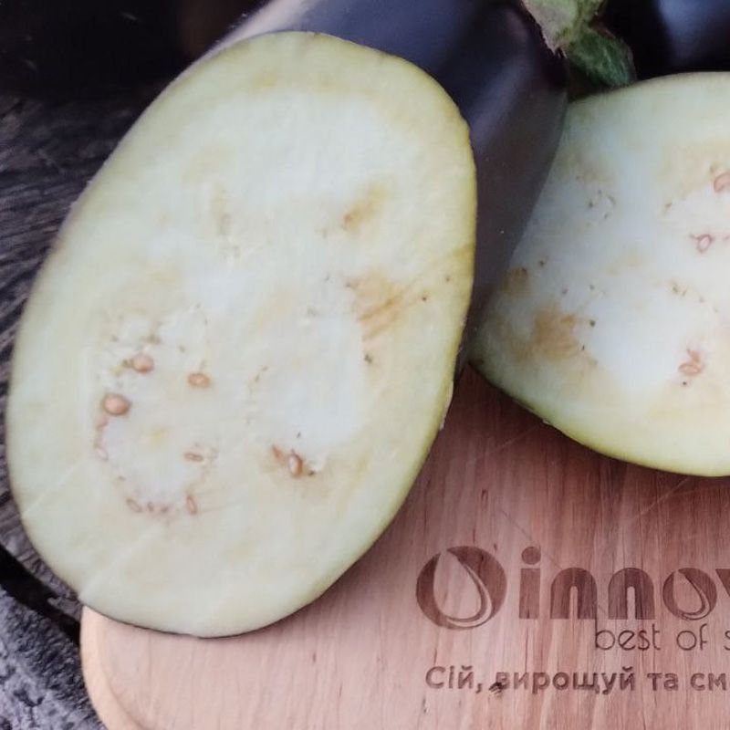 Характеристика плодів – Великий, злегка витягнутої, овально-циліндричної форми, темно-фіолетового кольору баклажан, без гіркоти та шипів на плодоніжках. Плоди високоякісні, щільні, з невеликою кількістю насіння. Середня вага – 200-300 г.