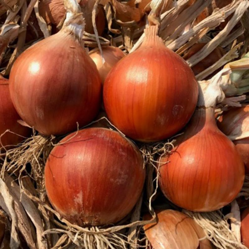 Характеристика плодів – Форма цибулини: однорідна округла. Розмір цибулини: великий. Твердість цибулини: дуже добра. Гарний захист шкіри з 4 лусками та привабливим кольором.