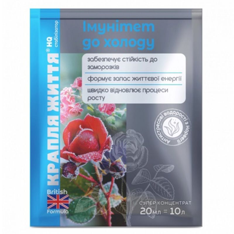 Добриво Крапля життя Імунітет до холоду активізує обмін і накопичення поживних речовин та фотосинтез. Прискорює відновлювальні процеси та активізує зростання, підвищує схожість насіння.