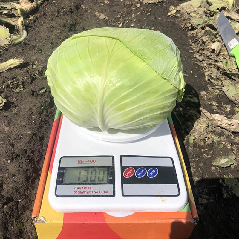 Характеристика плодів – Головки вагою 2-3 кг у залежності від густоти стояння, зеленого кольору, округло-приплюснуті, високої щільності, красивого товарного вигляду. Головки формуються вирівняні, довго стоять у полі, не розтріскуються. Високі смакові якості.