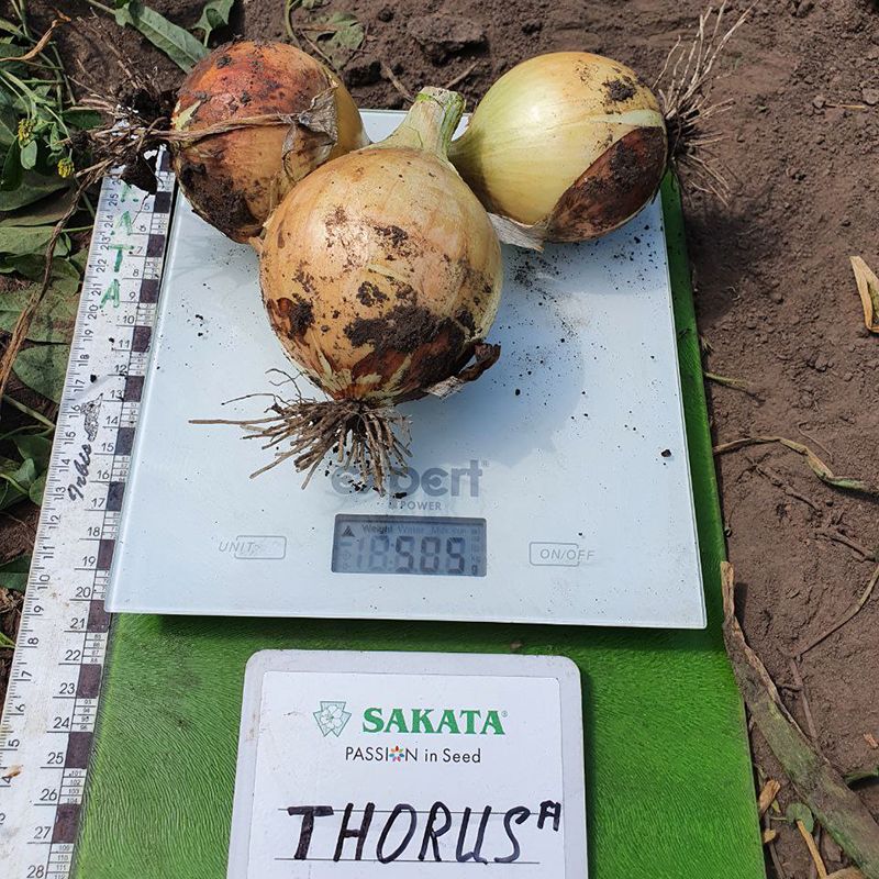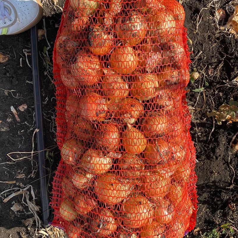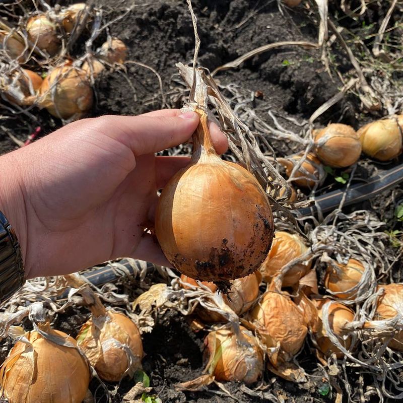 Характеристика плодів – Цибулини округлої форми, діаметром 6-12 см. Лушпиння жовтого кольору.