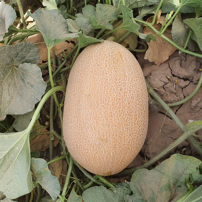 Характеристика плодів – Плоди овальної форми, мають густу чітко виражену сітку, шкірка жовто-помаранчева. М’якоть помаранчевого кольору, ніжна та соковита. Середня маса 2,5-3,5 кг.