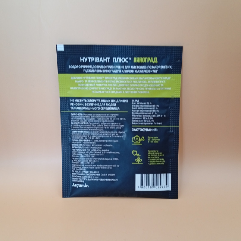 Водорозчинне добриво призначене для листових (позакореневих) підживлень винограду в ключові фази розвитку.