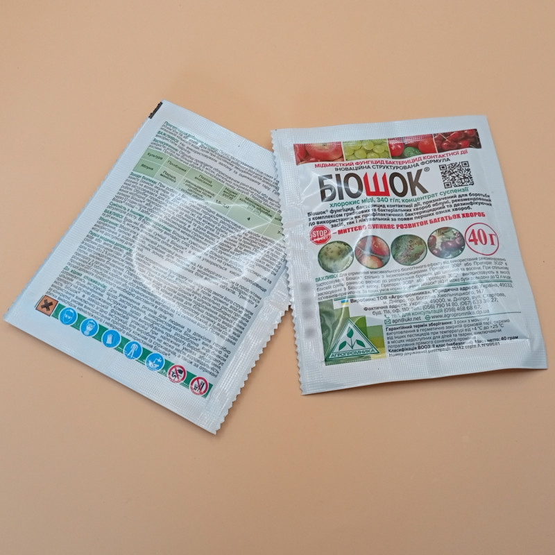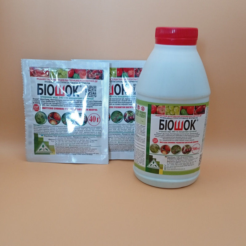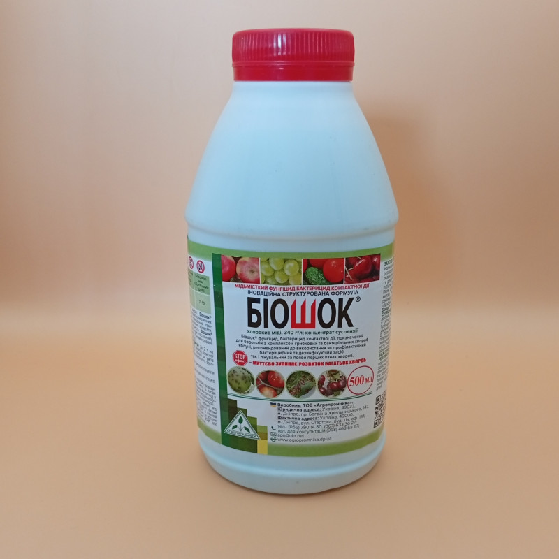 Фунгіцид Біошок – фунгіцид, бактерицид контактної дії, призначений для боротьби з комплексом грибкових та бактеріальних хвороб, хвороб яблуні, рекомендований до використання як профілактичний бактерицидний та дезинфікуючий засіб, так і лікувальний за появи перших ознак хвороб.