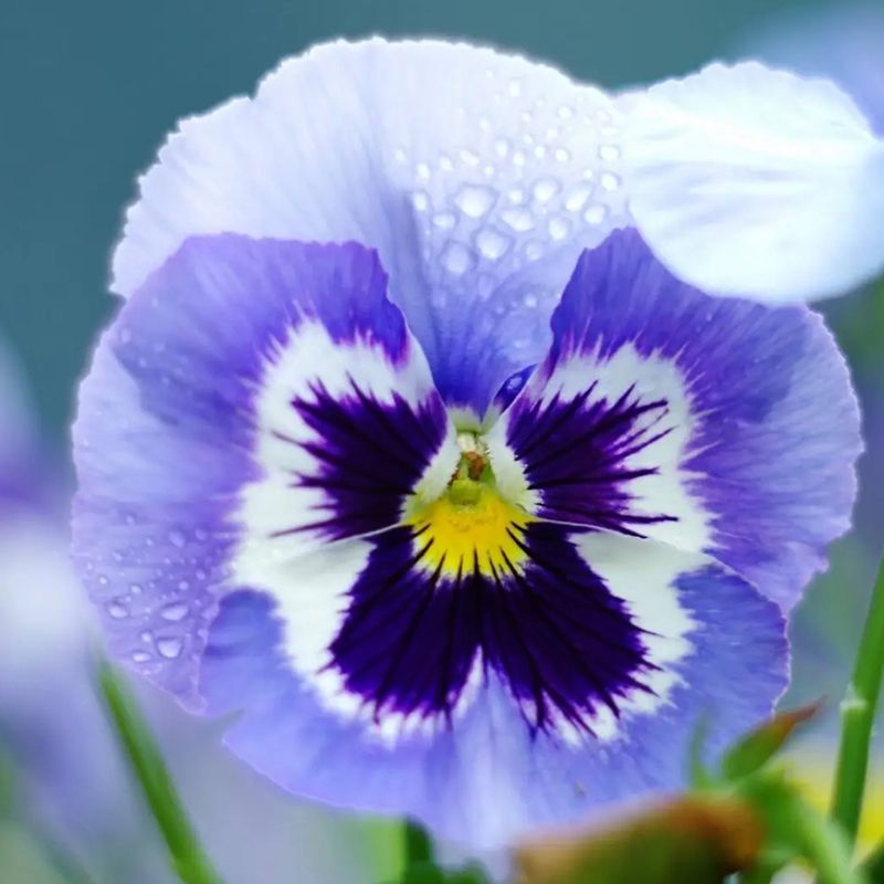 Віола Швейцарські Гіганти Adonis небесно-блакитна з вічком цвіте з ранньої весни до пізньої осені.